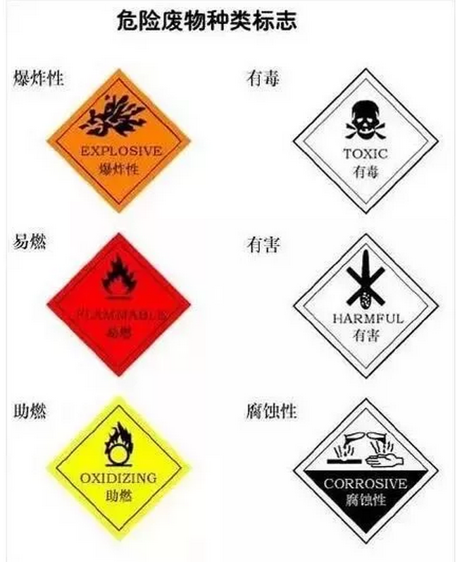 上圖中的危險廢物類別根據(jù)實(shí)際張貼相應(yīng)圖標(biāo)或印制相應(yīng)圖標(biāo),其有: