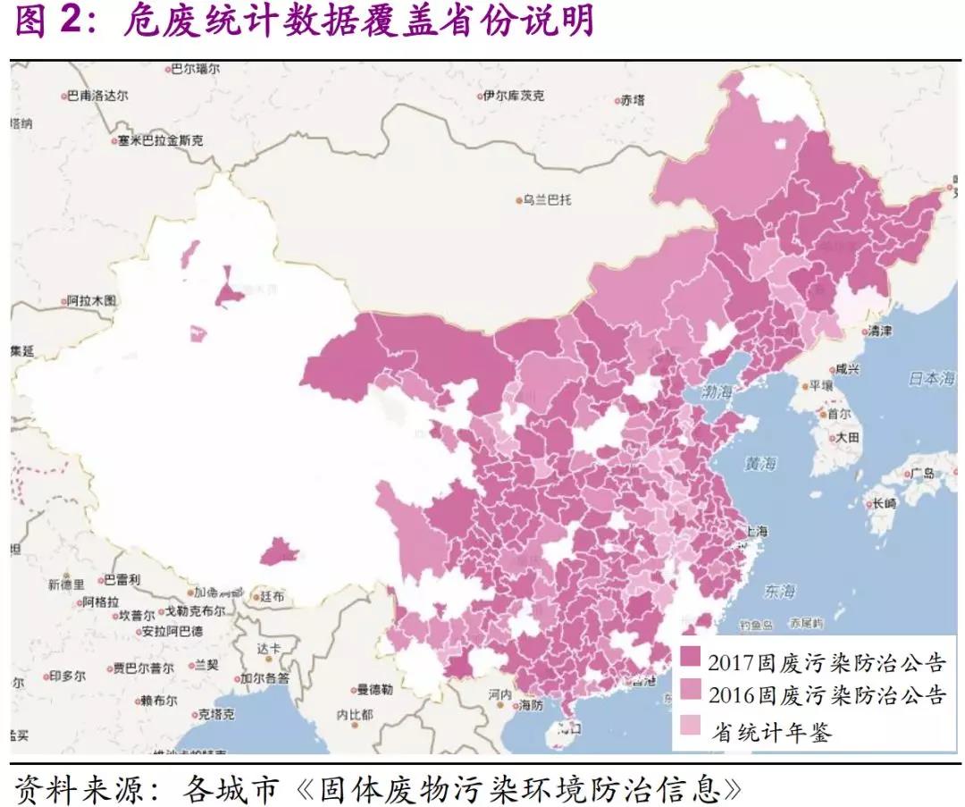 1)現(xiàn)有的市場研究中,對行業(yè)部分的理解仍停留在模糊層面。我們首次歸結(jié)全國300余個城市《固體廢物污染環(huán)境防治公告》,對數(shù)據(jù)進(jìn)行綜合分析,并結(jié)合各地各行業(yè)工業(yè)總產(chǎn)值,在危廢產(chǎn)量-種類-工業(yè)結(jié)構(gòu)之間建立起分析框架。