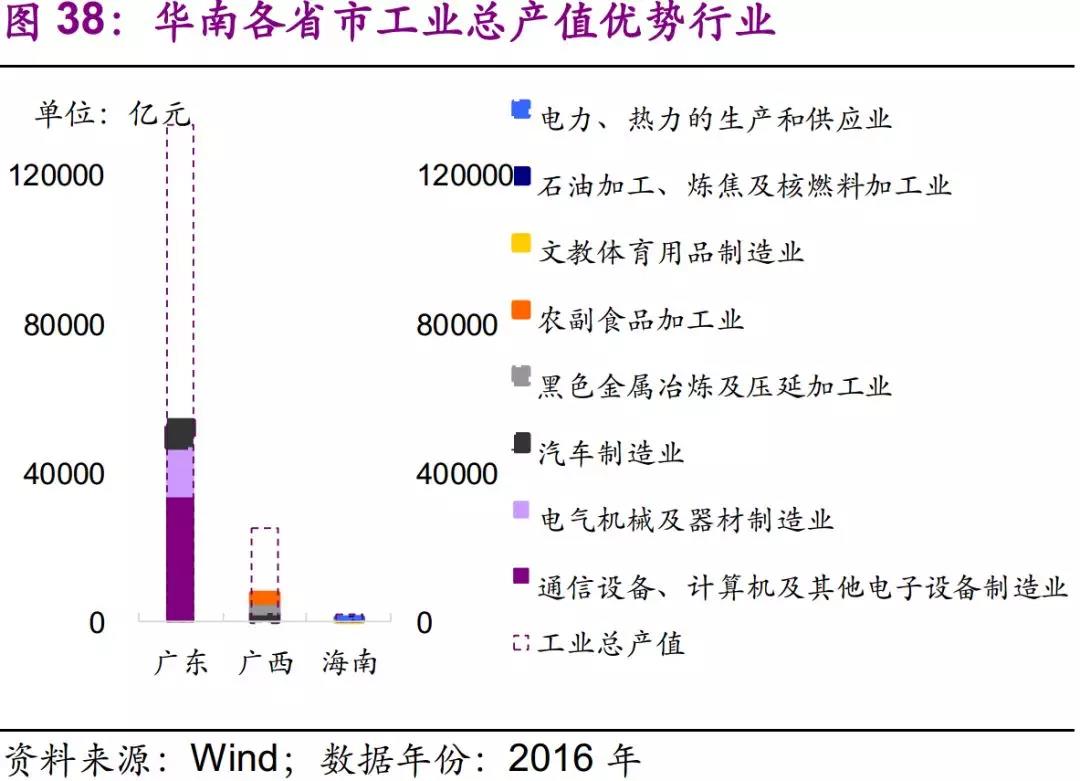從全行業(yè)來看,廣東、廣西、海南優(yōu)勢產(chǎn)業(yè)分別為通信設(shè)備、計算機(jī)及其他電子設(shè)備制造業(yè)、汽車制造業(yè)和文教體育用品制造業(yè)。