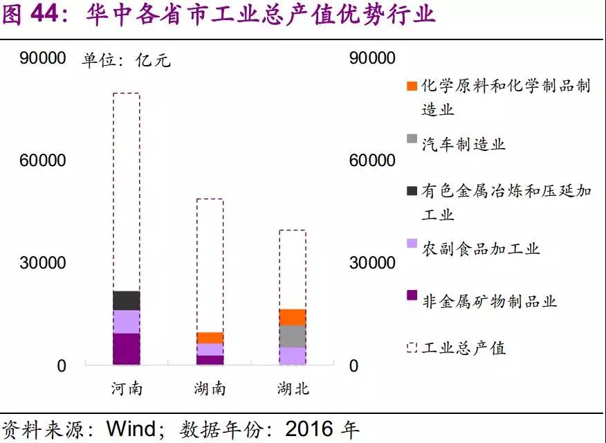 從全行業(yè)來看,河南、湖南、湖北優(yōu)勢產(chǎn)業(yè)分別為非金屬礦物制品業(yè)、農(nóng)副食品加工業(yè)和汽車制造業(yè)。