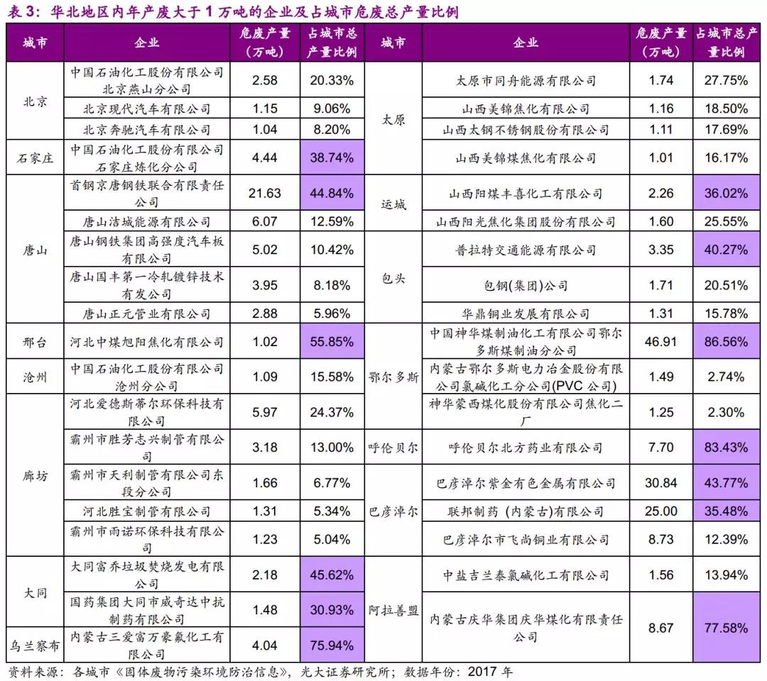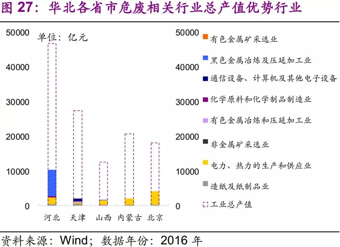 因此,我們建議關(guān)注華北地區(qū)黑色金屬冶煉及壓延加工業(yè)及電力、熱力的生產(chǎn)和供應(yīng)業(yè)所產(chǎn)生的危廢,如廢酸、廢催化劑等。