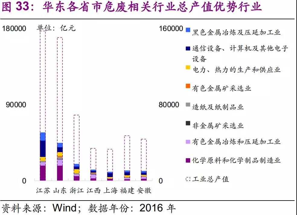 因此,我們建議關(guān)注華東地區(qū)化學(xué)原料和化學(xué)制品制造業(yè)、通信設(shè)備、計算機(jī)及其他電子設(shè)備制造業(yè)所產(chǎn)生的危廢,如蒸餾(精餾)殘渣、含銅廢液等。