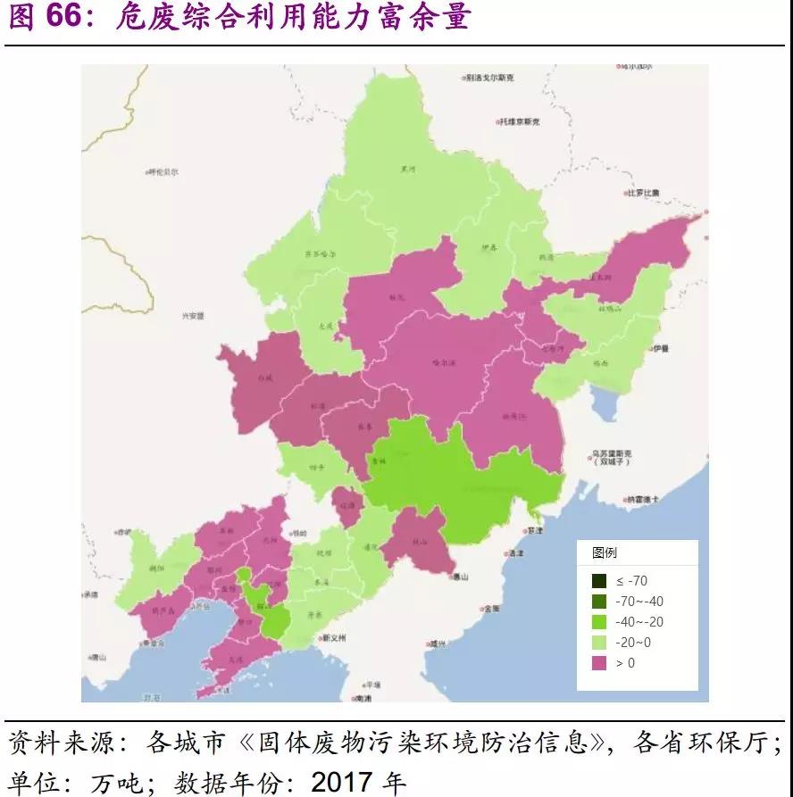 整體來看,東北地區(qū)利用能力富余,處置能力普遍不足。遼寧地區(qū)利用產(chǎn)能最為豐富,基本實現(xiàn)每個市都有富余,吉林省其次,黑龍江則利用和處置能力雙不足。其中吉林、鞍山利用能力缺口在20-40萬噸級別,吉林、大慶、本溪處置能力缺口在10-20萬噸級別。