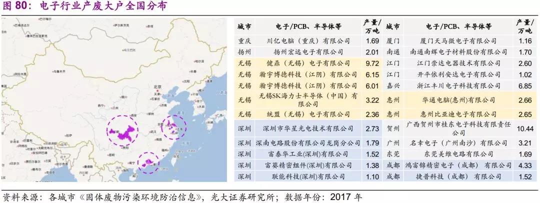 因此,我們建議關(guān)注華南地區(qū)通信設(shè)備、計算機(jī)及其他電子設(shè)備制造業(yè)所產(chǎn)生的危廢,如含銅廢液等。