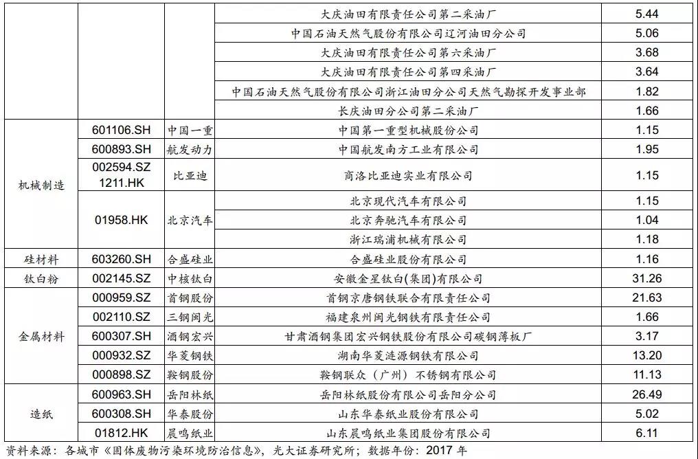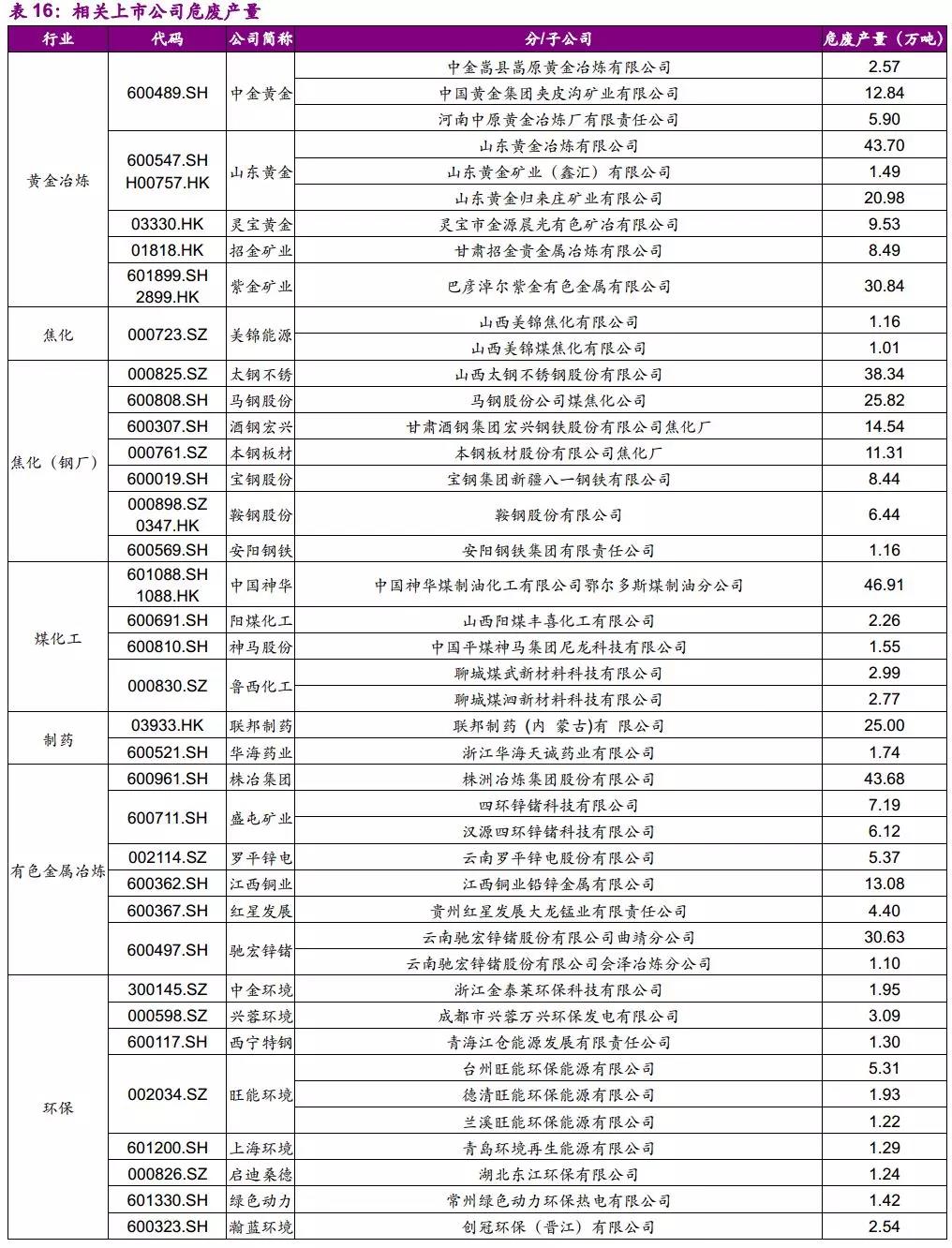 基于此,我們總結(jié)了相關(guān)供給側(cè)行業(yè)產(chǎn)廢量較大的上市公司名單。