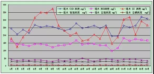 圖2 實(shí)測(cè)出水主要污染物濃度變化圖