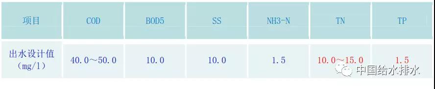 改造后二級(jí)出水設(shè)計(jì)水質(zhì)