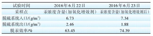 表3 氧化增效劑對脫硫系統(tǒng)前后汞濃度的影響