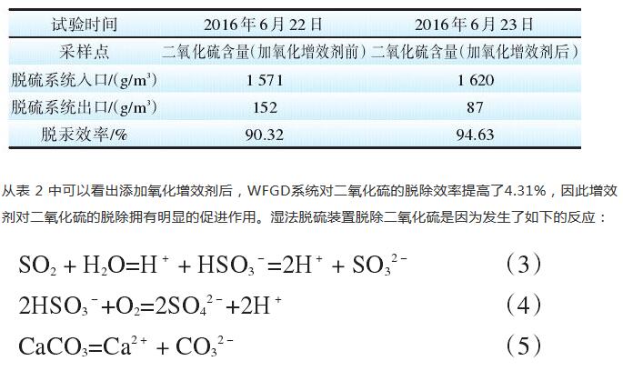 氧化增效劑對濕法脫硫系統(tǒng)脫硫脫汞效率的影響