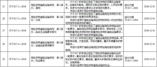 該標(biāo)準(zhǔn)將于2018年12月1日起實(shí)施。標(biāo)準(zhǔn)包括7個(gè)部分、600多頁、40多萬字,內(nèi)容完整、系統(tǒng)性強(qiáng),對(duì)危險(xiǎn)貨物分類、包裝、托運(yùn)、裝卸、運(yùn)輸?shù)拳h(huán)節(jié)的操作要求都進(jìn)行了明確規(guī)定。