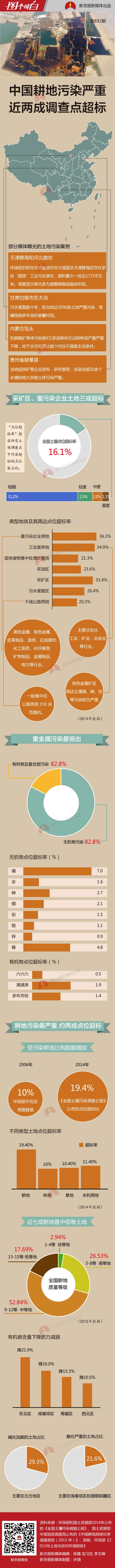 中國(guó)土壤污染問(wèn)題有多嚴(yán)重?目前能找到的最權(quán)威、最全面的數(shù)據(jù)來(lái)自2014年環(huán)保部和國(guó)土資源部共同發(fā)布的《全國(guó)土壤污染狀況調(diào)查公報(bào)》。數(shù)據(jù)顯示,全國(guó)土壤總的超標(biāo)率為 16.1%,其中最嚴(yán)重的耕地,調(diào)查點(diǎn)位超標(biāo)達(dá)到19.4%。