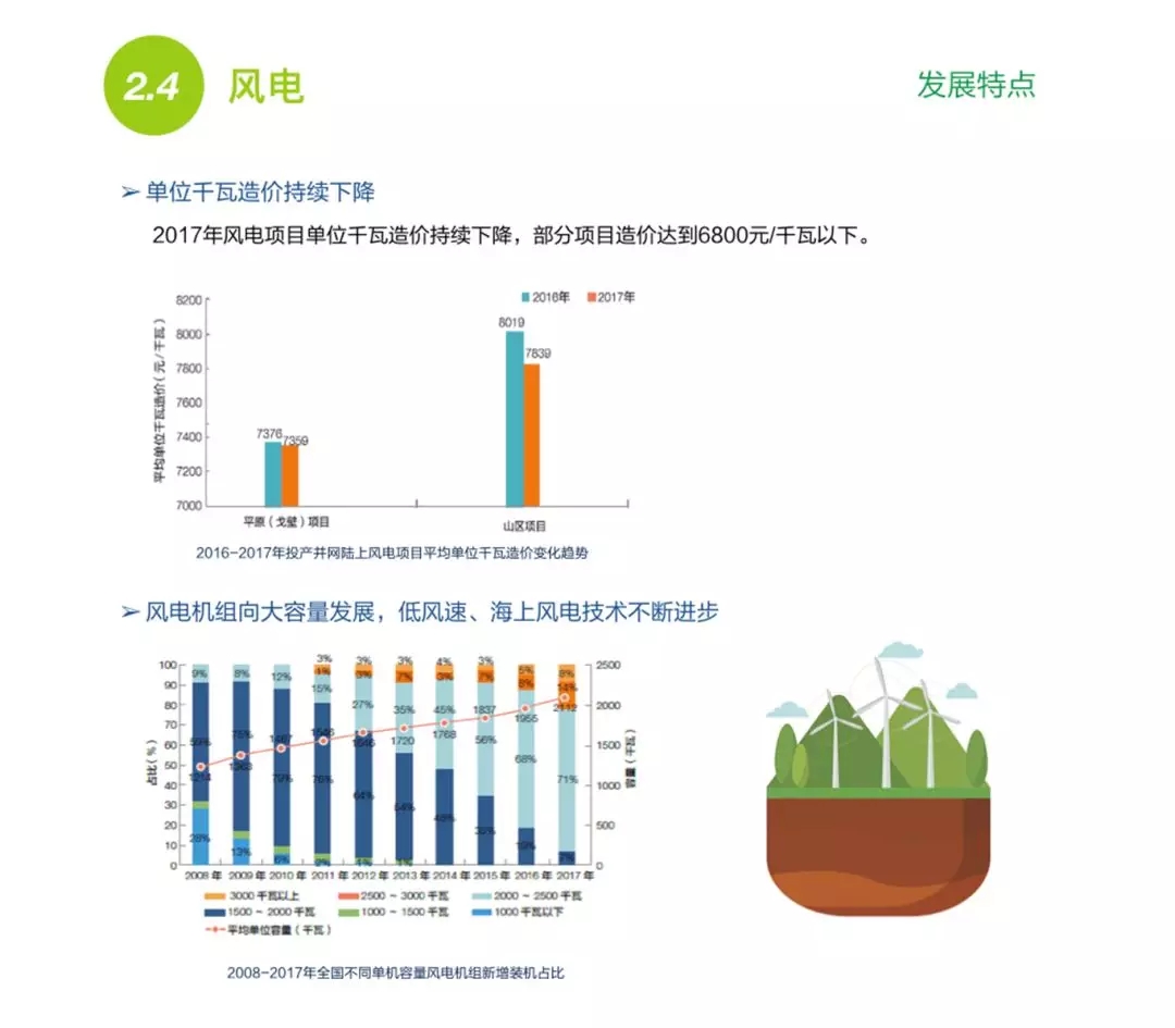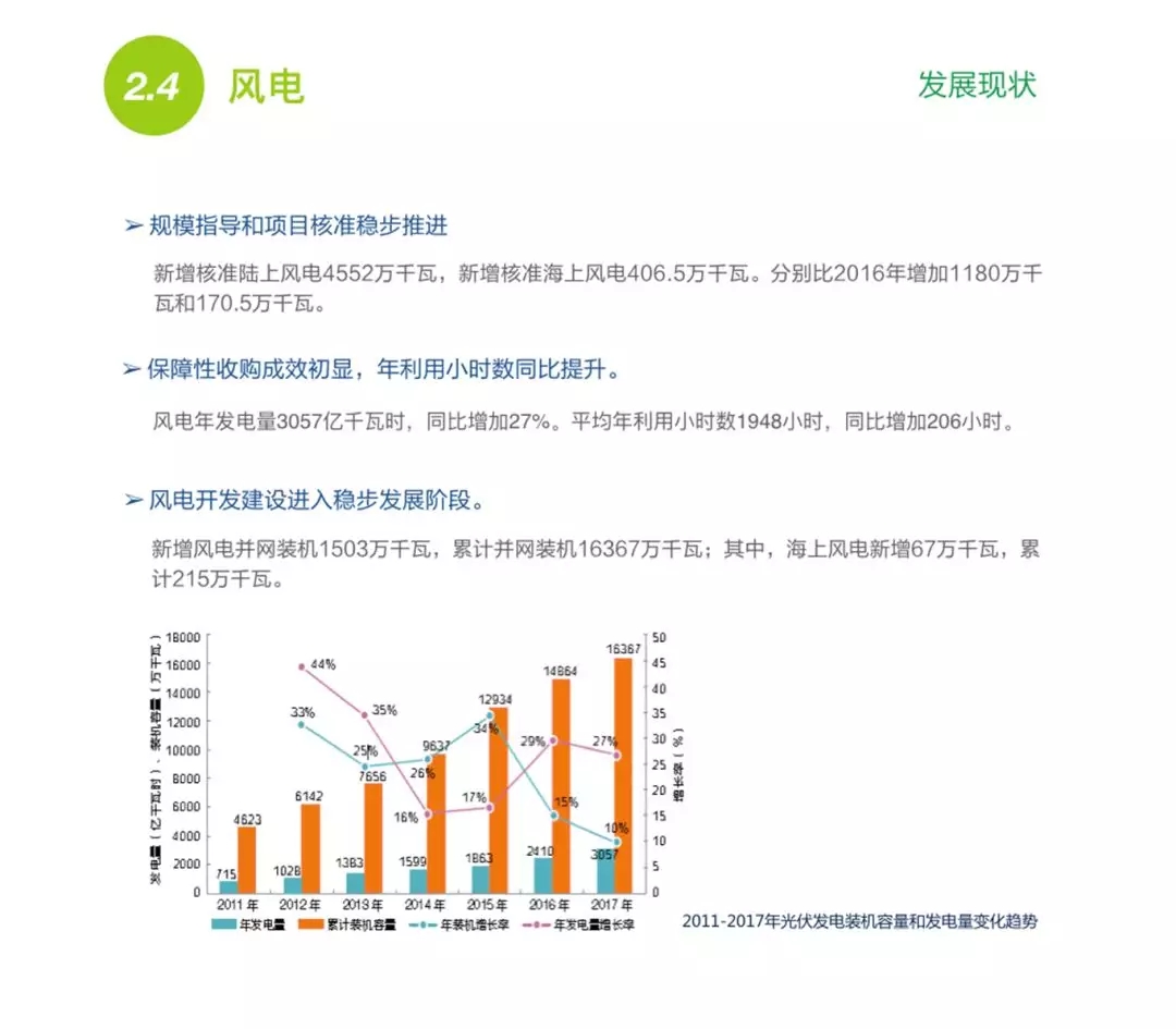 在風(fēng)電方面,去年我國核準(zhǔn)的陸上風(fēng)電和海上風(fēng)電達(dá)4958萬千瓦,2017年投產(chǎn)風(fēng)電達(dá)到了1503萬千瓦,累計(jì)并網(wǎng)裝機(jī)容量1.64億千瓦。棄風(fēng)現(xiàn)象得到了有效控制,風(fēng)電單位千瓦造價(jià)持續(xù)下降,2017年部分項(xiàng)目的造價(jià)已經(jīng)低于每千瓦6800元。