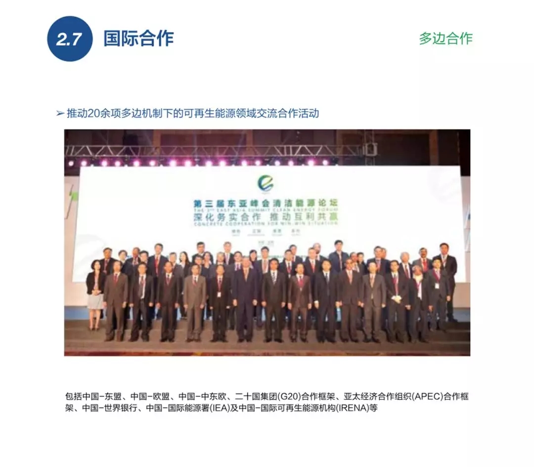國際合作方面,去年國家能源局推動(dòng)了20余項(xiàng)多邊機(jī)制下可再生能源的領(lǐng)域交流互動(dòng),同時(shí)與40多個(gè)國家和地方政府簽署涵蓋可再生能源技術(shù)、能源效率、智能電網(wǎng)、電源開發(fā)等方面的雙邊合作協(xié)議。