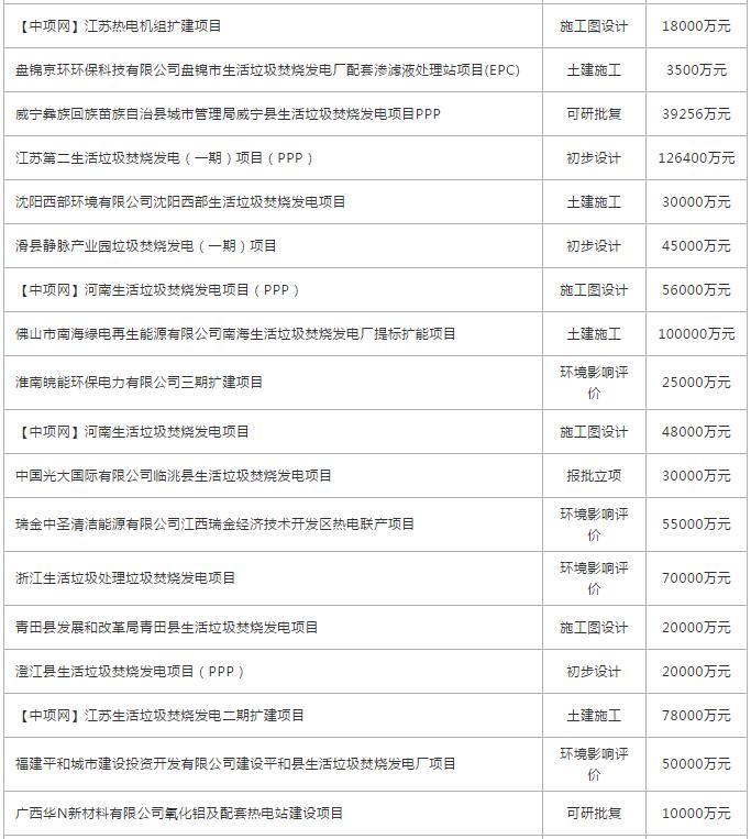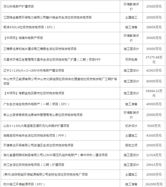 9月份全國擬在建垃圾發(fā)電、熱電廠項目
