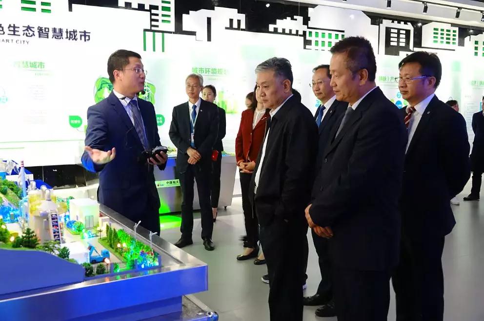 當(dāng)天,吳曉青一行參觀了航天凱天環(huán)保展示運(yùn)營中心,展廳運(yùn)用沙盤、VR互動體驗(yàn)等多媒體手段,全方位展示公司在建設(shè)綠色生態(tài)智慧城市、綠色生態(tài)美麗鄉(xiāng)村、綠色生態(tài)工業(yè)園區(qū)以及綠色生態(tài)健康家庭方面的成就。