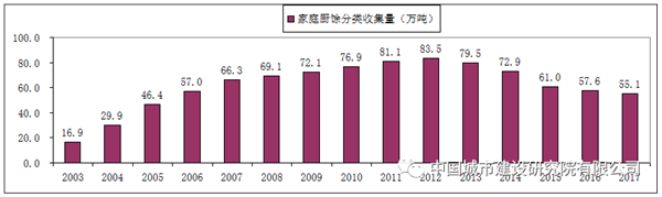 下圖是臺(tái)灣家庭廚余垃圾收集量的變化,2017年收集已經(jīng)退回到10前的水平。
