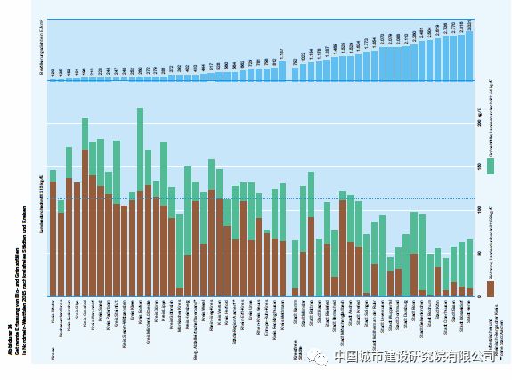 德國不同地區(qū)人均單獨(dú)收集的有機(jī)垃圾量差別很大。這是德國北威州2015年的有機(jī)垃圾人均分類收集量統(tǒng)計(jì)。最右邊的人口密度高的地區(qū)是所謂的城市,城市人口密度最高也就是每平方千米2000多人,比我們低多了,因此,單獨(dú)收集的有機(jī)垃圾主要是園林垃圾(綠色部分),而廚余垃圾收集量較少(紅色部分),而相應(yīng)的農(nóng)村地區(qū),單獨(dú)收集的有機(jī)垃圾主要是廚余垃圾,園林垃圾占比反而低。實(shí)際上,德國農(nóng)村以及小城鎮(zhèn)地區(qū),園林綠化面積更多,相應(yīng)園林垃圾產(chǎn)生量會(huì)更多,但是這部分園林垃圾并沒有納入統(tǒng)計(jì),這也反映了生活垃圾統(tǒng)計(jì)口徑問題。德國廚余垃圾分類收集的實(shí)際數(shù)據(jù)對(duì)國內(nèi)開展垃圾分類有很好的借鑒意義。