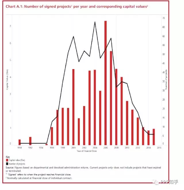 都說PPP模式發(fā)源于英國,截止2016年3月31日,英國用了大約20幾年的時間總共有716個PPP項目,總計金額594億英鎊(約5000億人民幣)。