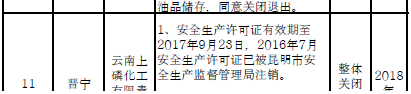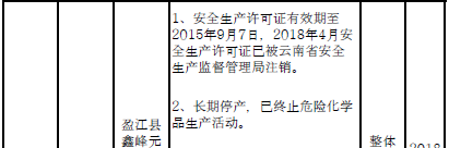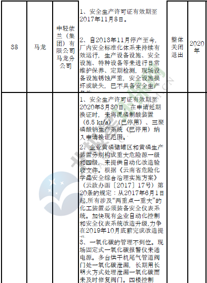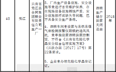 日前云南省應(yīng)急管理廳發(fā)布了印發(fā)危險(xiǎn)化學(xué)品安全工程三年行動(dòng)計(jì)劃有關(guān)企業(yè)名單,明確關(guān)閉退出、就地改造、綜合整治的危險(xiǎn)化學(xué)品生產(chǎn)(儲(chǔ)存)企業(yè)名單。