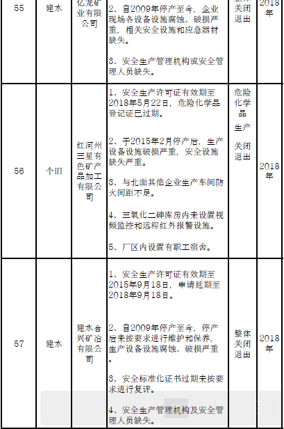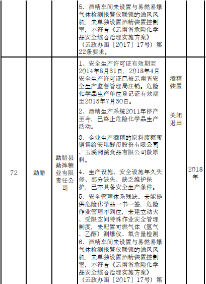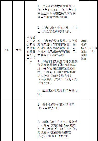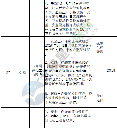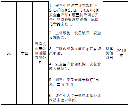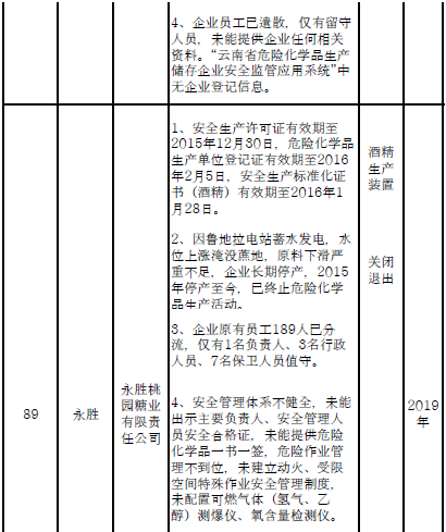 附件下載:1.附件1云南省危險(xiǎn)化學(xué)品安全工程三年行動(dòng)計(jì)劃關(guān)閉退出企業(yè)(裝置)名單(91戶).docx