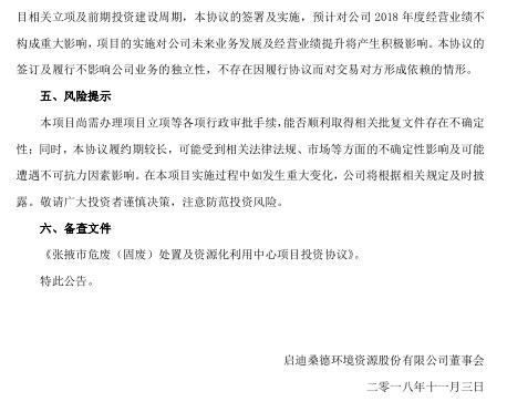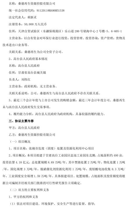 啟迪桑德日前公告,公司全資子公司桑德再生與甘肅省高臺縣人民政府簽署協(xié)議,桑德再生將在甘肅省張掖市高臺縣投資建設(shè)張掖市危廢(固廢)綜合處置及資源化利用中心項目,并在項目建設(shè)、運(yùn)營、管理和生態(tài)環(huán)境保護(hù)等方面進(jìn)行合作。該項目投資估算4.18億元,危廢(固廢)處置規(guī)模8.89萬噸/年。