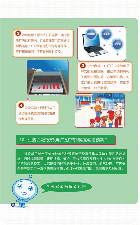 “我們制定了楚燒爐廢氣處理系統(tǒng)污染事故排放風(fēng)險(xiǎn)對(duì)策和防范措施,通過(guò)加強(qiáng)管理、定期檢修、維護(hù)、在線監(jiān)測(cè)以及相關(guān)技術(shù)上的支持作為相應(yīng)的應(yīng)急預(yù)案,以保證焚燒過(guò)程的安全性。垃極焚燒煙氣處理、廠區(qū)安全等等制定了一系列的應(yīng)急措施,保證一且發(fā)觀問(wèn)題,就能得到及時(shí)處理?!惫獯髧?guó)際有關(guān)負(fù)責(zé)人滿懷信心地介紹說(shuō)。