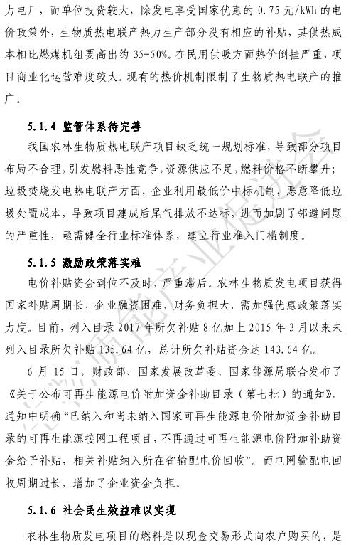 《報告》指出:部分垃圾焚燒發(fā)電企業(yè)惡性競爭導(dǎo)致垃圾處理費減少,使垃圾焚燒發(fā)電項目對垃圾電價依賴性增加。《報告》還提出:去補貼化是各類可再生能源發(fā)展的必然趨勢,截至2017年,未列入可再生能源電價附加資金目錄的補助資金和未發(fā)放補助資金共約143.64億元,其中農(nóng)林生物質(zhì)約64.1億元。
