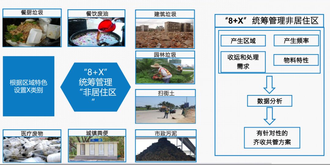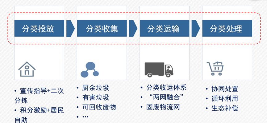 大分流,主要針對廣義的“生活垃圾”,從大的方向上對狹義的“生活垃圾”、大件垃圾、建筑垃圾、園林垃圾、餐飲垃圾、糞便等,建立的分流收運體系,分別進行收集、運輸和處理。