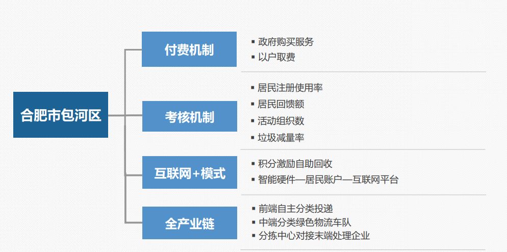 目前北京的16個區(qū)中我們已經(jīng)在8個區(qū)中開展了工作,除此之外,2017年1月,中標合肥市包河區(qū)生活垃圾分類項目,該項目主要服務包河區(qū)10萬戶的居民垃圾分類服務工作。付費機制是政府購買服務,按戶進行收費,每戶280塊錢。還有一套考核機制,根據(jù)居民注冊使用率、居民回饋額、活動組織數(shù)、垃圾減量率進行考核與反饋。