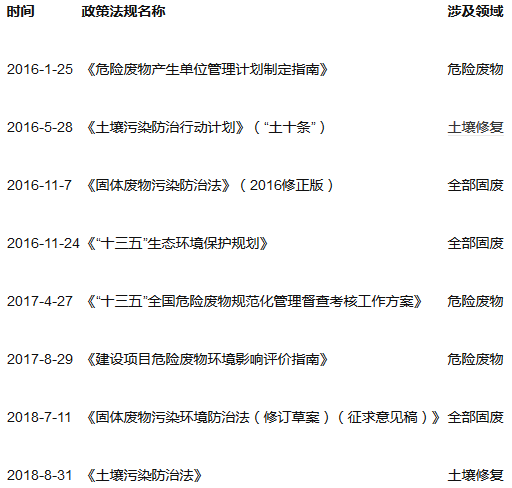 表2. 固廢處理利用領域近年重點政策法規(guī)