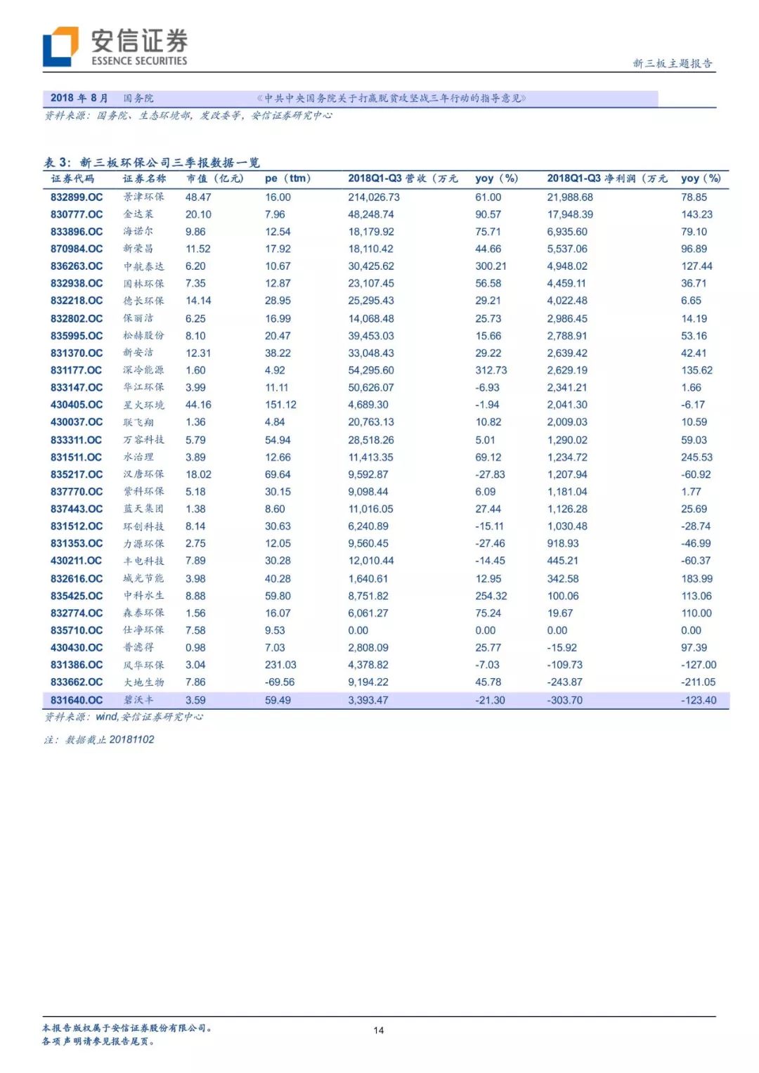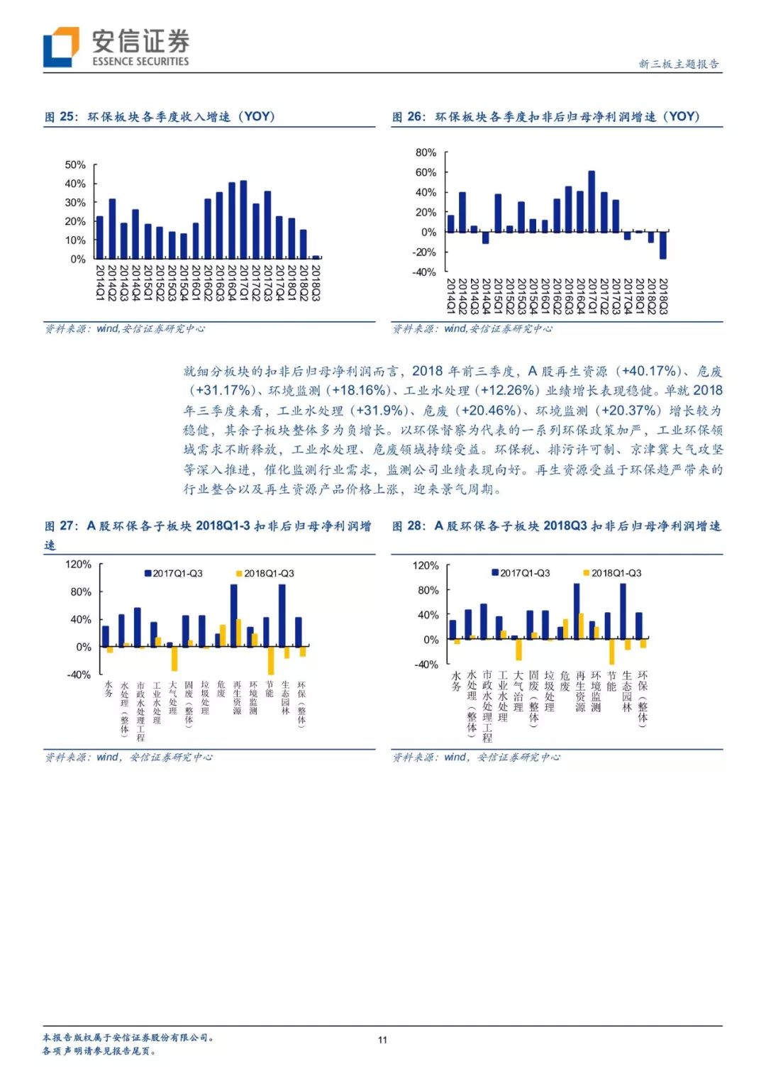 從政策進(jìn)展看環(huán)境變遷路徑,環(huán)境治理已經(jīng)實(shí)現(xiàn)圍繞大氣+水+土壤三大維度建立起“環(huán)保稅+排污許可證”兩大保障、從城市走向農(nóng)村的一體化大環(huán)保格局。自年初環(huán)保稅、排污許可證實(shí)施以來,政策力度不減且頻頻出臺(tái),在肯定我國(guó)環(huán)境治理已取得階段性的勝利的同時(shí),進(jìn)行大氣、水、固廢、土壤等細(xì)分領(lǐng)域的深化推進(jìn)。我們對(duì)于2018年以來各細(xì)分板塊政策及變遷進(jìn)行了梳理。而新三板擁有400家公司,覆蓋了大氣治理、水治理、固廢治理等各個(gè)領(lǐng)域。我們繼續(xù)看好環(huán)保板塊,建議從政策推進(jìn)進(jìn)程中發(fā)掘潛在機(jī)會(huì),建議關(guān)注水治理、固廢治理和再生資源板塊投資機(jī)會(huì)。