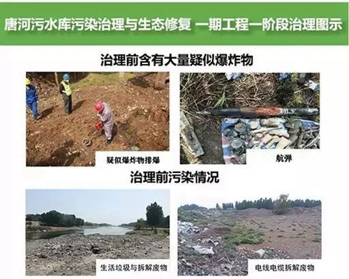 污染周期長(zhǎng),污染物多、成分復(fù)雜,存在疑似爆炸物等是唐河污水庫(kù)一期工程項(xiàng)目治理的特殊所在。