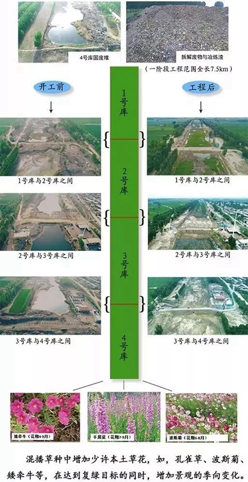 現(xiàn)在的唐河污水庫(kù),煥然一新。按照未來(lái)規(guī)劃,這里將打造生態(tài)廊道和唐河郊野公園。昔日的垃圾污水庫(kù)不見(jiàn)了,種類(lèi)多樣的花草盛開(kāi)在這片區(qū)域內(nèi)。