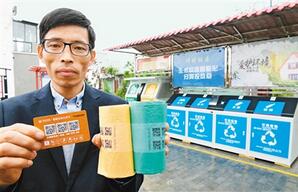 村民可將紙張、塑料、金屬、玻璃等可回收垃圾分類裝進(jìn)橘黃色二維碼垃圾袋,或打包貼上二維碼,掃描后投放至專用垃圾箱,機器自動稱重,核算出價格,等垃圾回收工作人員分揀確認(rèn)之后,按不同類別向村民返還積分,積分還可到指定地點兌換相應(yīng)的生活用品。何鵬說,有了這些激勵政策,每位村民對垃圾分類都非常認(rèn)真。