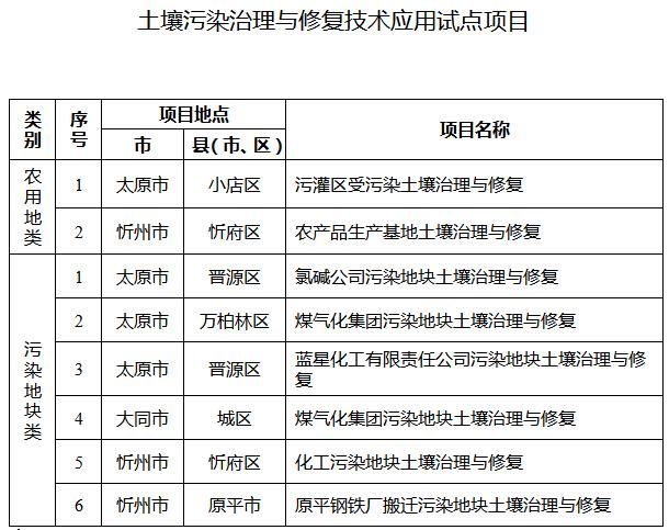 20.推進(jìn)土壤污染治理與修復(fù)項(xiàng)目庫(kù)建設(shè),強(qiáng)化土壤污染防治項(xiàng)目?jī)?chǔ)備。進(jìn)一步抓好土壤污染治理與修復(fù)技術(shù)應(yīng)用試點(diǎn)工作,2017年重點(diǎn)實(shí)施2個(gè)農(nóng)用地類(lèi)和6個(gè)污染地塊類(lèi)土壤污染治理與修復(fù)技術(shù)應(yīng)用試點(diǎn)項(xiàng)目(見(jiàn)附件),按照國(guó)家規(guī)定時(shí)限要求完成。以城市周邊污灌區(qū)、受污染耕地集中區(qū)域?yàn)橹攸c(diǎn),各市要啟動(dòng)一批受污染耕地治理與修復(fù)項(xiàng)目,全省共啟動(dòng)3000畝受污染耕地治理與修復(fù)。(省環(huán)保廳、省農(nóng)業(yè)廳、省國(guó)土資源廳牽頭,各市人民政府負(fù)責(zé)落實(shí))