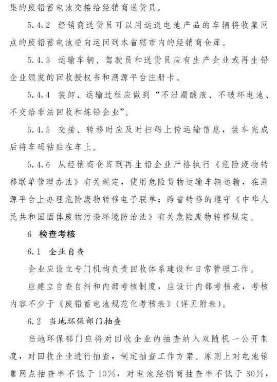 在試點(diǎn)市范圍內(nèi),廢鉛蓄電池在收集網(wǎng)點(diǎn)和經(jīng)銷商倉庫之間轉(zhuǎn)移,可使用鉛蓄電池貨物運(yùn)輸車輛轉(zhuǎn)運(yùn),廢鉛蓄電池自經(jīng)銷商轉(zhuǎn)運(yùn)至持危險(xiǎn)廢物許可證的再生鉛企業(yè)、工業(yè)企業(yè)產(chǎn)生的廢鉛蓄電池集中轉(zhuǎn)運(yùn)的,按照危險(xiǎn)廢物進(jìn)行管理,運(yùn)行危險(xiǎn)廢物轉(zhuǎn)移聯(lián)單,遵守危險(xiǎn)貨物運(yùn)輸管理有關(guān)規(guī)定??缡∞D(zhuǎn)移廢鉛蓄電池的,應(yīng)當(dāng)經(jīng)移出地和移入地省級環(huán)保部門批準(zhǔn)。