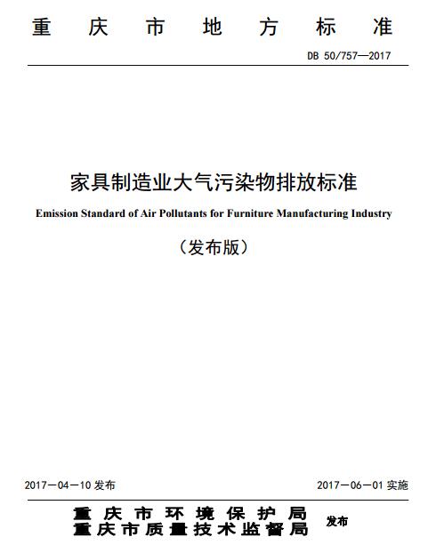 重慶印發(fā)《家具制造業(yè)大氣污染物排放標(biāo)準(zhǔn)》。標(biāo)準(zhǔn)對(duì)家具制造業(yè)大氣污染排放特別是VOCs排放做了詳細(xì)具體的規(guī)定。全文如下: