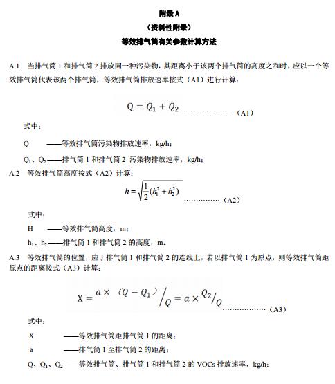 4.3.3兩個(gè)排放相同污染物的排氣筒,若其距離小于其幾何高度之和,應(yīng)合并并視為一根等效排氣筒。有三根以上的近距離排氣筒,且排放同一種污染物,應(yīng)以前兩根的等效排氣筒,依次與第三、第四根排氣筒取等效值。三根以上排氣筒計(jì)算等效高度時(shí),應(yīng)選取不同等效順序計(jì)算的等效高度值中的最小值作為等效排氣筒高度。等效排氣筒有關(guān)參數(shù)的計(jì)算公式參見附錄B。