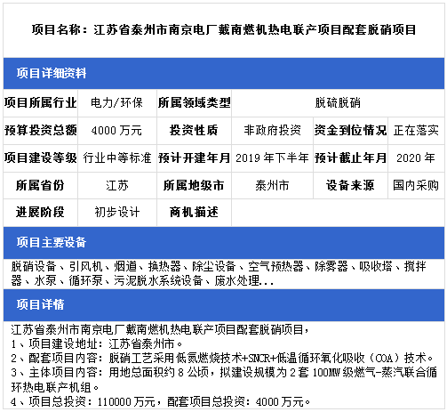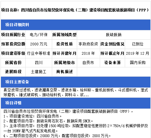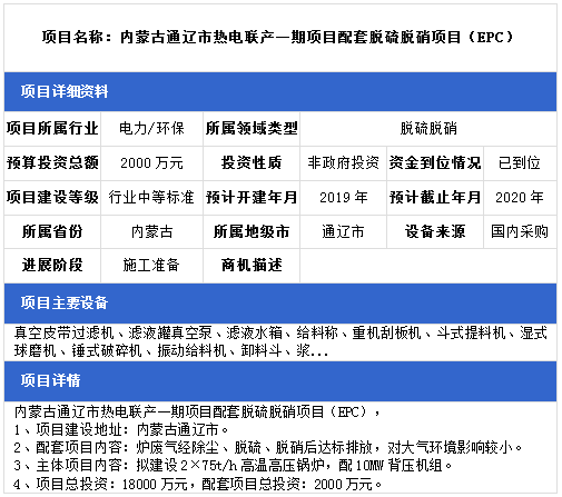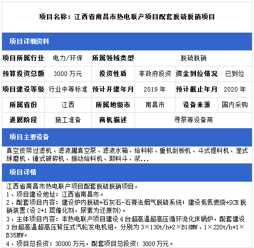 中項網(wǎng)獨家授權(quán)北極星環(huán)保網(wǎng)發(fā)布最新脫硫脫硝項目(2018年11月14日更新),涉及環(huán)保電廠配套脫硫脫硝項目、生物質(zhì)發(fā)電配套脫硫脫硝項目、熱電聯(lián)產(chǎn)脫硫脫硝項目、垃圾焚燒發(fā)電廠脫硫脫硝項目等,具體項目信息如下: