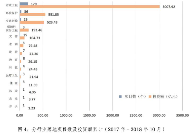2018年10月,民營企業(yè)以聯(lián)合體牽頭方或者單獨(dú)作為社會資本方落地項(xiàng)目3個。2017年至2018年10月累計(jì)落地項(xiàng)目114個,占39.45%。