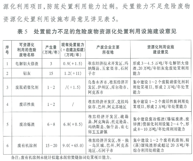 新疆提出,到2020年底,全區(qū)危險廢物集中處置利用能力達到200萬噸/年,2023年底達到230萬噸/年。