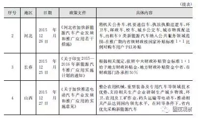 2015年,北京、河北、長春、山西等地陸續(xù)出臺了相關(guān)新能源車政策,紛紛響應(yīng)中央標(biāo)準(zhǔn)1:1配套補助新能源環(huán)衛(wèi)車,如表2-1所示。