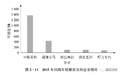 2015年全國垃圾車企業(yè)銷售情況