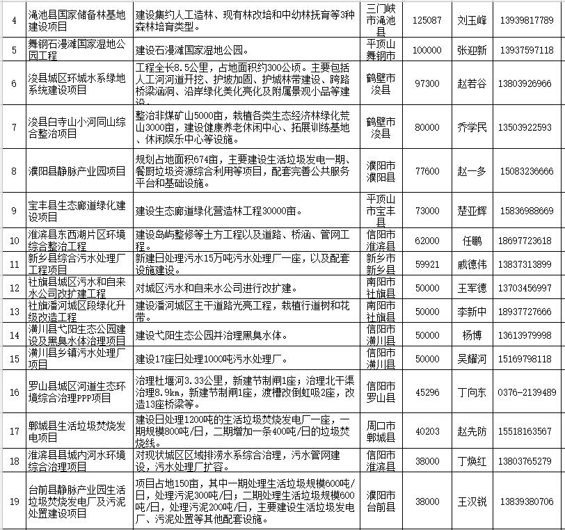 河南省向民間資本推介重點領(lǐng)域項目清單:涉及多個環(huán)保項目