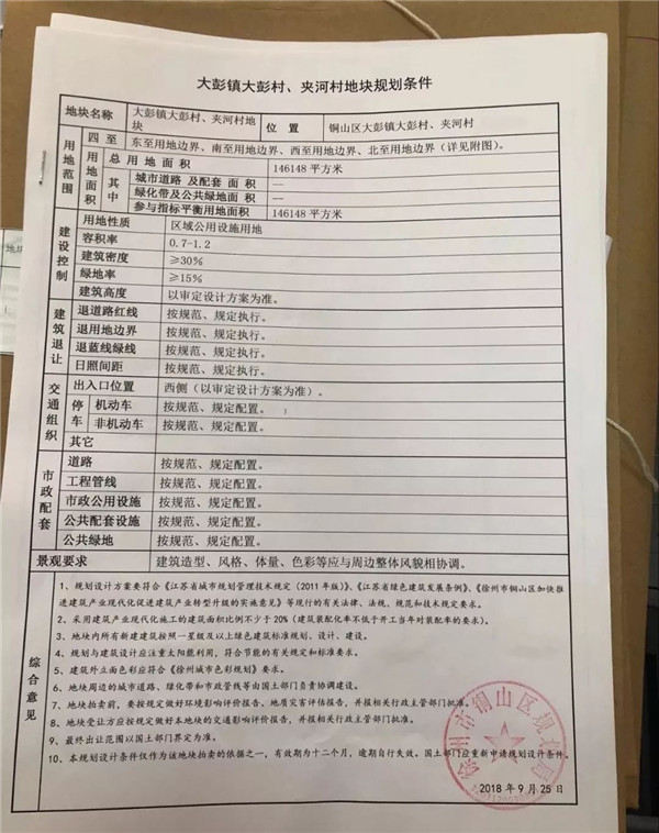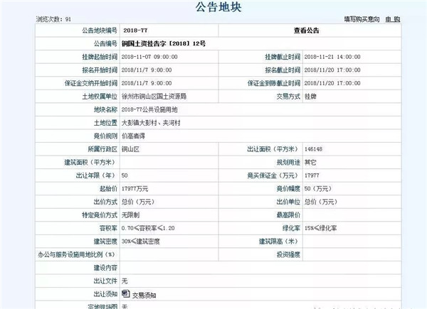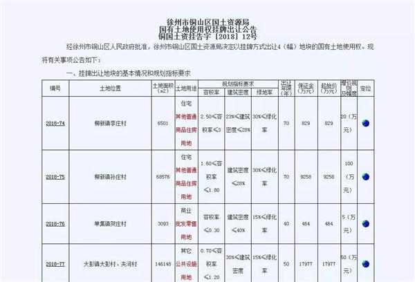 巧合的是,該幅地塊同徐州市銅山區(qū)國土資源局于10月18日發(fā)布的國有土地使用權(quán)掛牌出讓公告銅國土資掛告字[2018]12號中的2018-77地塊為同一地塊。