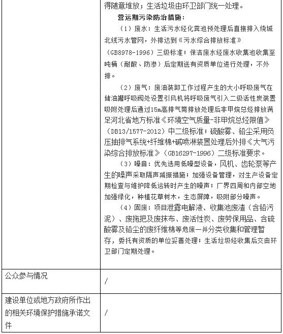 年回收、倉(cāng)儲(chǔ)廢礦物油10000t、廢舊鉛酸蓄電池50000t建設(shè)項(xiàng)目環(huán)境影響報(bào)告表擬審批公示
