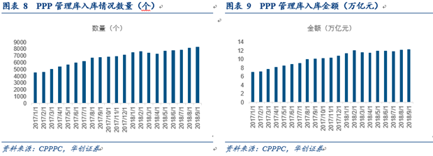 從財(cái)政部政府和社會(huì)資本合作中心18年三季報(bào)披露情況來(lái)看,三季度管理庫(kù)項(xiàng)目環(huán)比二季度新增540個(gè)、投資額3,471億元。1-9月,管理庫(kù)新增項(xiàng)目1,152個(gè)、投資額1.5萬(wàn)億元。截至2018年三季度,管理庫(kù)累計(jì)項(xiàng)目數(shù)8,289個(gè)、投資額12.3萬(wàn)億元。整體呈穩(wěn)中有升的趨勢(shì)。