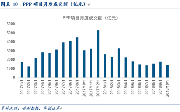 但從明樹(shù)數(shù)據(jù)公布的PPP項(xiàng)目成交情況來(lái)看,今年以來(lái)PPP成交額顯著下滑,由2017年12月份的5292億下滑至2018年10月的1423.1億元,降幅高達(dá)73.11%。
