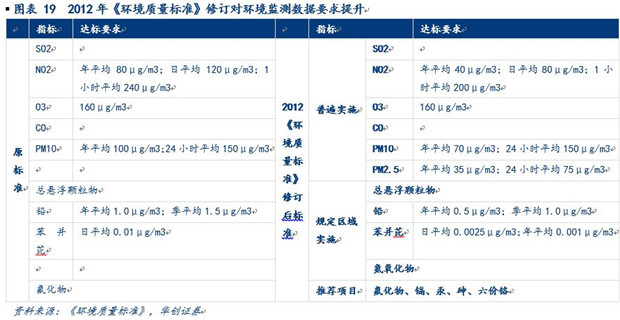 對(duì)監(jiān)測(cè)數(shù)據(jù)要求提升從政策看來(lái)主要表現(xiàn)在兩個(gè)方面:(1)擴(kuò)大監(jiān)測(cè)指標(biāo)范圍+縮緊合格要求。早在2012 年環(huán)保部頒布新版《環(huán)境空氣質(zhì)量標(biāo)準(zhǔn)》中普遍實(shí)施的指標(biāo)中新增PM2.5,部分區(qū)域?qū)嵤┑闹笜?biāo)中新增了氮氧化物,并新增推薦項(xiàng)目鎘、汞、砷、六價(jià)鉻,擴(kuò)大了環(huán)境監(jiān)測(cè)數(shù)據(jù)的覆蓋范圍;同時(shí)對(duì)NO2、PM10、鉛、苯并芘等已有監(jiān)測(cè)指標(biāo)的合格要求也變得更加嚴(yán)格。而該標(biāo)準(zhǔn)的實(shí)施細(xì)則在2013年3月頒布并廣泛實(shí)行。2014年又進(jìn)一步出臺(tái)對(duì)大氣和石化行業(yè)的細(xì)分要求,提高對(duì)排放限值的規(guī)定。(2)管理+采集雙管齊下提升數(shù)據(jù)真實(shí)性。自2012年出臺(tái)的《關(guān)于加強(qiáng)環(huán)境空氣質(zhì)量監(jiān)測(cè)能力建設(shè)的意見(jiàn)》開(kāi)始提出要通過(guò)健全審核機(jī)制、提高公布數(shù)據(jù)的頻率等管理手段來(lái)加強(qiáng)環(huán)境監(jiān)測(cè)數(shù)據(jù)的有效性,提出共享數(shù)據(jù)的概念,并制定“三步走”的執(zhí)行方案,系列政策一直持續(xù)到2013年底。