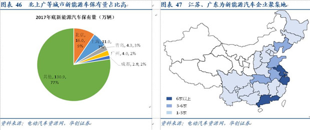 目前國(guó)內(nèi)新能源汽車的制造企業(yè)和推廣政策集中在上海、江蘇、廣東等東南部地區(qū),而發(fā)達(dá)的一二線城市仍占據(jù)新能源汽車保有量前列。截至2017年底,以北上廣等為代表的前五城市新能源汽車保有量約為38.1萬(wàn)輛,占全國(guó)153萬(wàn)輛的23%。同樣地,動(dòng)力電池的回收渠道方面同樣呈現(xiàn)較強(qiáng)的區(qū)域性,且產(chǎn)能分布與能源汽車推廣地區(qū)的重合度也相對(duì)較高。由于在回收過(guò)程中運(yùn)輸、處理等環(huán)保要求高,因此目前行業(yè)內(nèi)的龍頭企業(yè)主要通過(guò)自建生產(chǎn)線、并購(gòu)和與上下游合作等多種方式在前端渠道(即回收端)和后端渠道(即回收產(chǎn)物的下游利用端)進(jìn)行拓展,從而提高區(qū)域覆蓋面。其中,以光華科技、格林美等為代表的企業(yè)利用主業(yè)優(yōu)勢(shì),從供給和需求兩段提早布局,一方面拓寬前端回收渠道的覆蓋地域,另一方面通過(guò)自建生產(chǎn)線擴(kuò)充產(chǎn)能,并與利用企業(yè)簽訂戰(zhàn)略合作協(xié)議等方式保障下游需求順暢。
